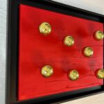 Medium: Golden leaf on golf balls and Pigments on canvas